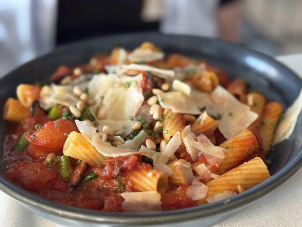 ベジタリアンのパスタを食べたいと。