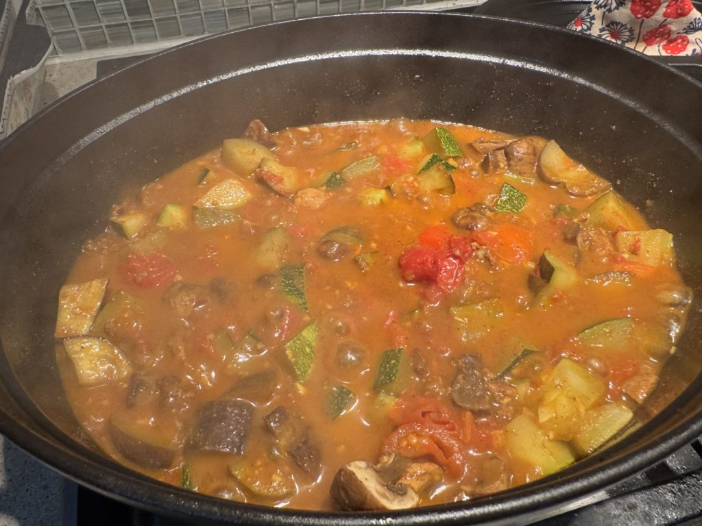 そして、たっぷりのトマト、ズッキーニ、茄子、ニンニクを使った、
