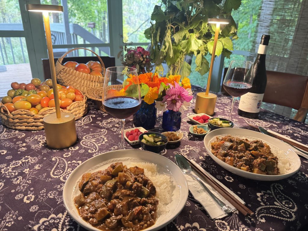 自家栽培の野菜を使ってのお料理、