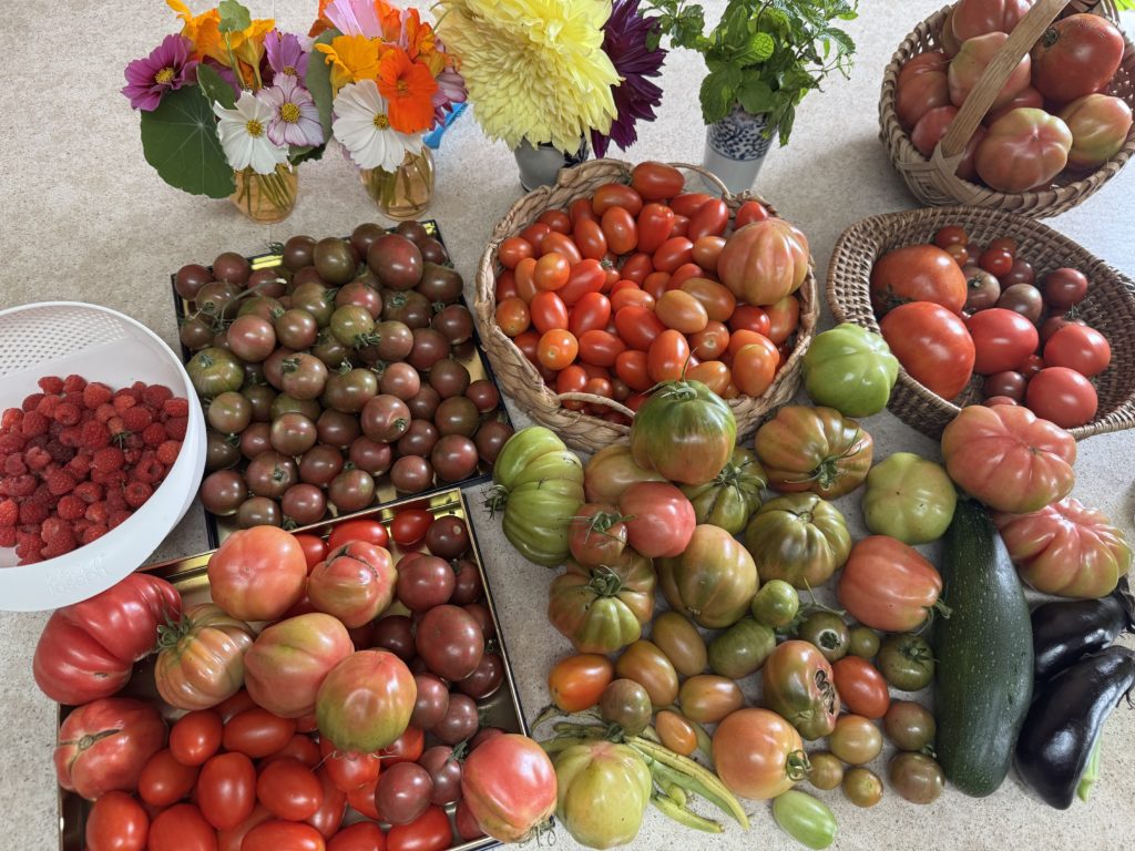 うちは今、たくさんのトマトを収穫しています。