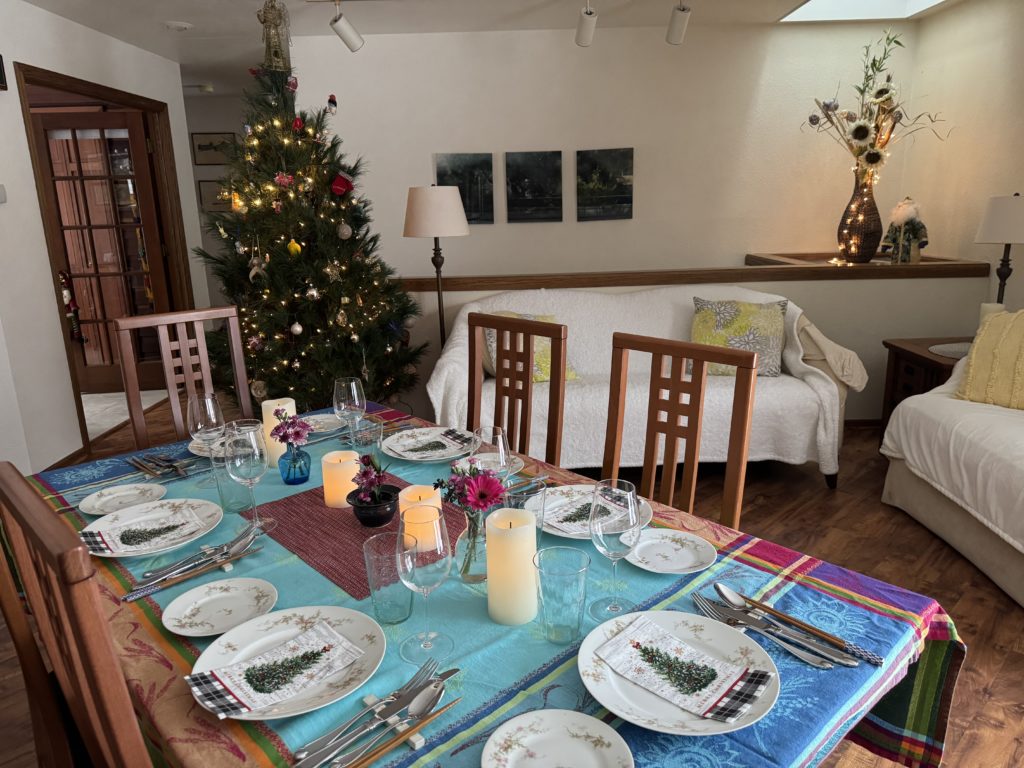 塩分制限の義兄のために、レモンもたっぷり用意しました。寒い日だったので暖炉に火を入れ、せいろで蒸した料理を熱々でサーブできて、冬の食卓にぴったりでした。