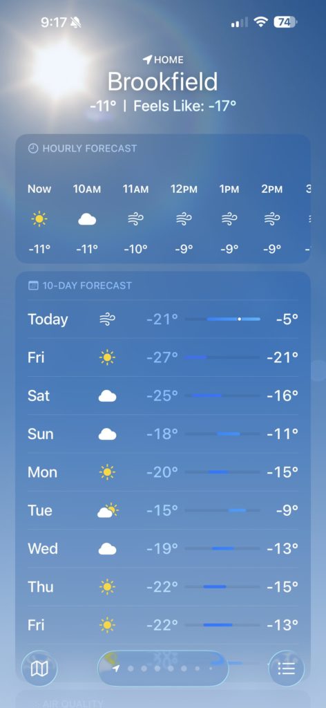 私の住むアメリカ中西部にも、大寒波がやってきています。